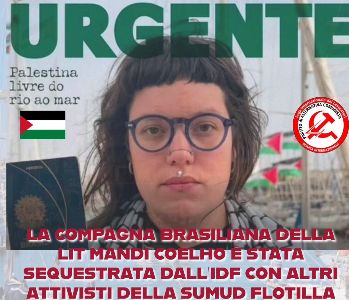 Facciamo appello alla mobilitazione in tutte le città del mondo in difesa della Flottiglia e in solidarietà con il popolo palestinese a Gaza. Proponiamo che le mobilitazioni del 1° maggio in tutto il mondo pongano al centro delle proprie rivendicazioni la difesa della Flotilla e dei suoi membri.